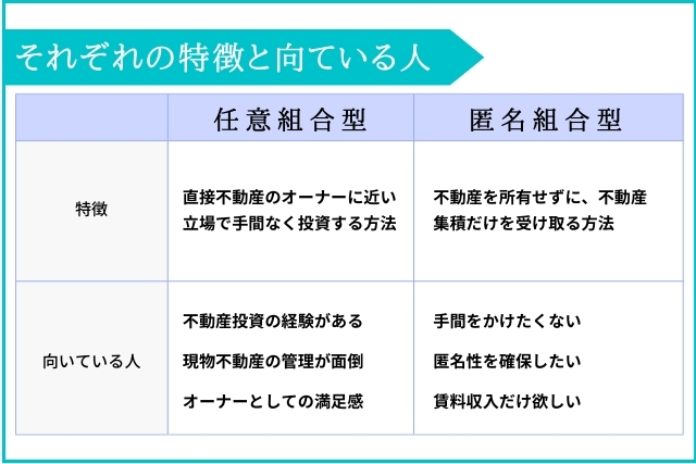 匿名組合型と任意組合型の特徴と向いている人