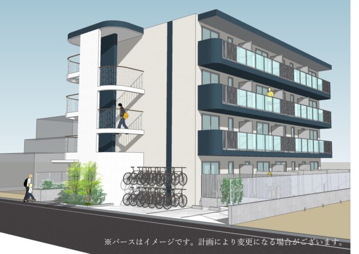 ■種類/共同住宅 ■構造・規模/RC造・地上4階建 16戸 ■延べ床面積/486.20㎡ ■間取り/1LDK 各住戸の専有面積:30.00㎡ ■築年月/2026年3月完成予定